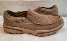 This product is a men's size 11 Skechers Relaxed Fit shoe with gel-infused memory foam for added comfort. The shoe features a solid blue color with a round toe shape, perfect for casual occasions. Made with a linen blend upper material, this loafer-style shoe is perfect for the summer, fall, and spring seasons. The memory foam accents provide extra cushioning for all-day wear, making it a great addition to any man's shoe collection.