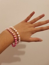 This handmade elastic golden beaded heart charm bracelet is a cute accessory perfect for women. The bracelet features a charm type bead with a heart design, great for a birthday occasion. The materials are sourced from Great Britain, and it is handmade with an adjustable fit. This bracelet is a lovely addition to any outfit, adding a touch of charm and elegance to your look.