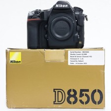 The Nikon D850 FX 45.7MP DSLR Digital Camera is a high-quality camera in Nikon's D series, known for its impressive maximum resolution of 45.7 MP. With a super low shutter count of 6403, this camera ensures sharp and detailed images. It features advanced connectivity options such as USB, HDMI, and WiFi, as well as auto-focus capabilities and a lithium-ion battery for convenience. The sleek black design makes it a stylish choice for photography enthusiasts looking for a versatile and reliable digital camera. Perfect condition. Working perfectly. Comes with battery grip and battery charger. 2 batteries