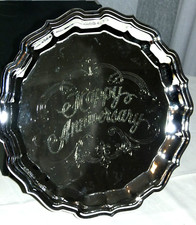 This Medium Round Silver Metal Tray - 25.5cm is a pretty, elegant homeware choice, perfect for fans of silver decor and metal accessories. This tray is crafted of metal and comes with a round design. It is completed with a textured silver finish. A great home accessories, ideal for using as a table centrepiece displaying vases or candles. This tray could also be used as make up or perfume display on a dressing table.
