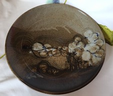VINTAGE STUDIO POTTERY LARGE SHALLOW BOWL BLUE SPECKLED GLAZE HANDMADE