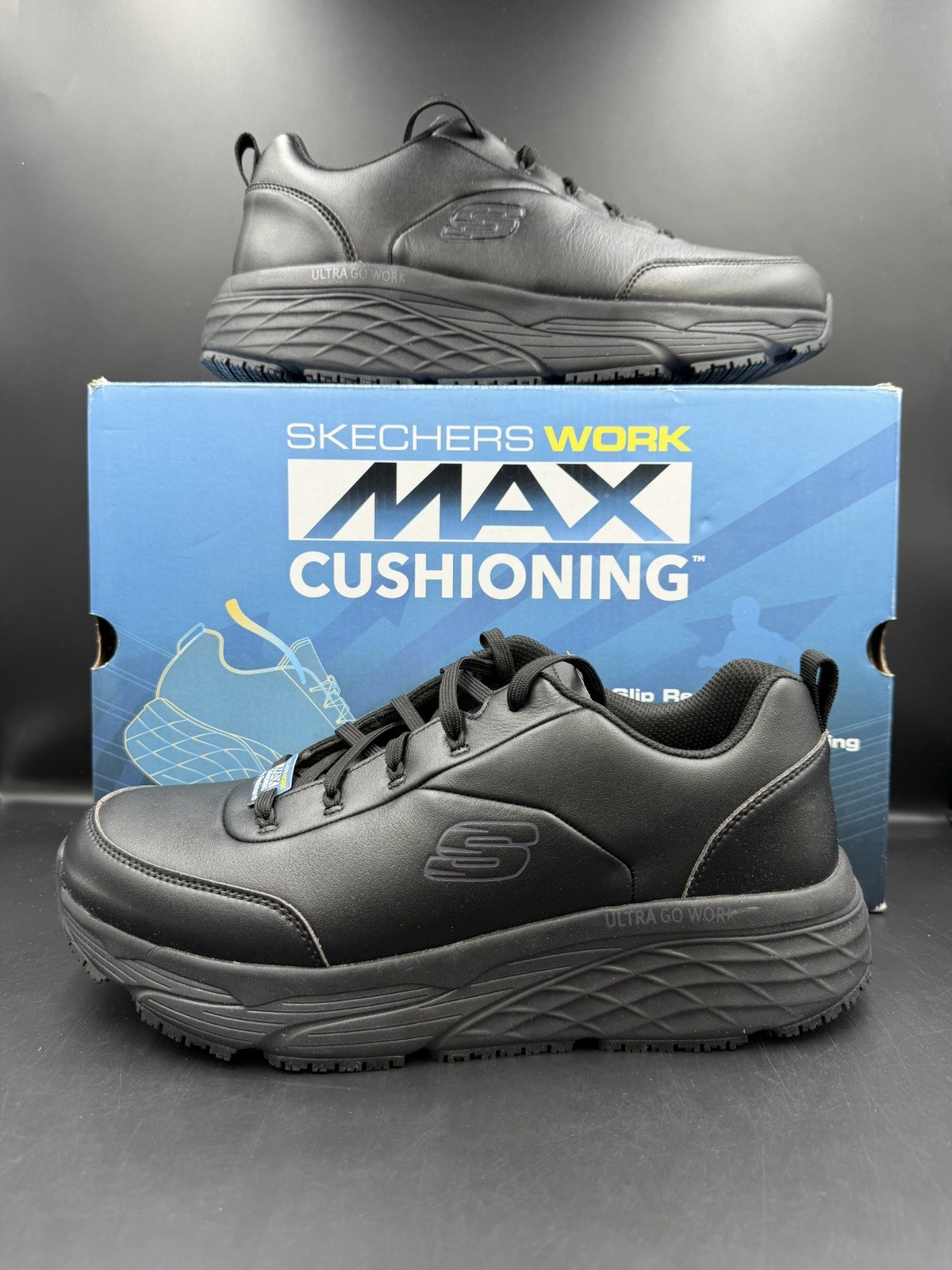 These are NEW with tags - they’ve just been tried on outside hence they have been listed as used. THEY HAVE NEVER BEEN WORN The Skechers Work RF: Max Cushioning Elite SR in Filchner Black is a high-quality safety/work boot designed for men in UK size 9.5. With its maximum cushioning and elite support, this boot is ideal for those working in industrial or safety-intensive environments. Made by Skechers, a trusted brand in personal protective equipment, this shoe offers comfort and durability while providing the needed protection for the feet and ankles. Perfect for those seeking a reliable and stylish option for their work footwear.