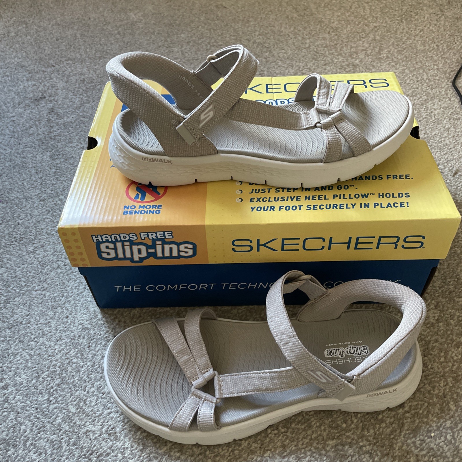 Skechers Go Walk Flex woman sandals Size UK 7 Brand New without a box They have been only tried at home but too big Beige The Skechers Women's GO Walk Flex Sandal in size UK 7 is a comfortable and lightweight slip-on sandal perfect for casual occasions during the spring, summer, and autumn seasons. The beige colour adds a versatile touch to any outfit, making it a convenient and stylish choice for women on the go. With Skechers' signature GOwalk product line, you can trust that these sandals provide the support and comfort you need for all-day wear.