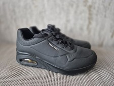 The Skechers Uno Stand On Air Junior Trainers in black, UK size 4, are a stylish and comfortable choice for young women. With a low top design and rubber outsole, these trainers are perfect for casual occasions and walking activities. Featuring the signature Skechers logo, these sneakers have a standard shoe width and are made of synthetic upper material. The black colour adds a sleek touch to these trendy trainers, making them a versatile addition to any wardrobe.