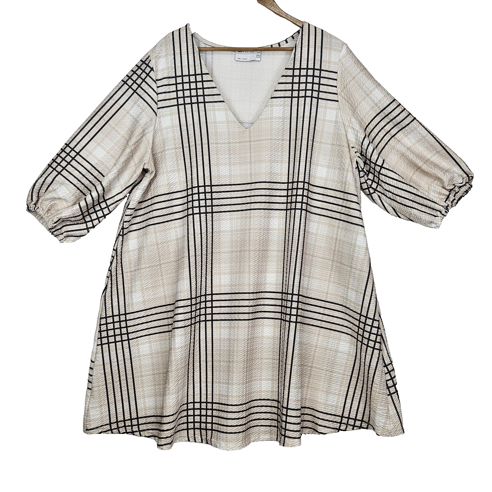Asos Design Curve Shift Textured Mini Dress Women's Sz 16 Tan Black Puff Sleeve