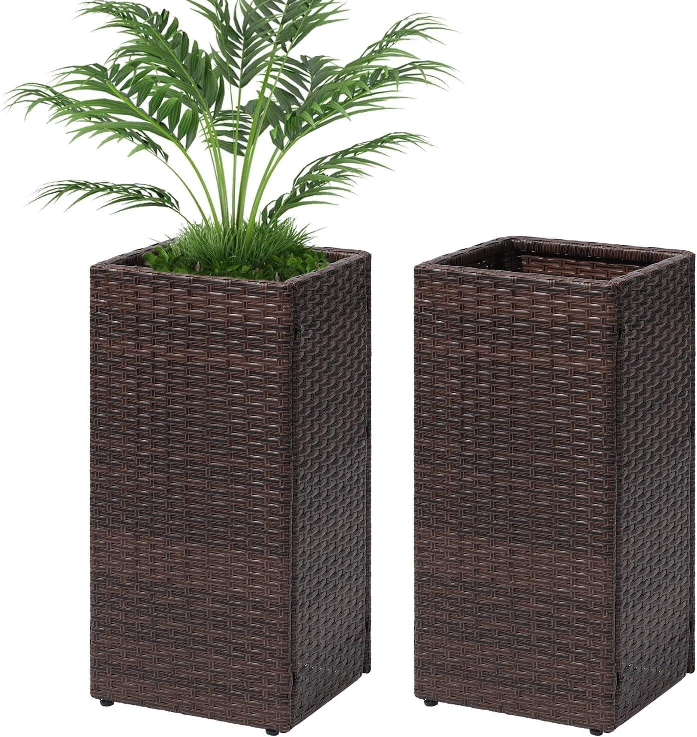 2 Pack Square Rattan Tall Large Plant Pot Flower Indoor Outdoor Garden Planters