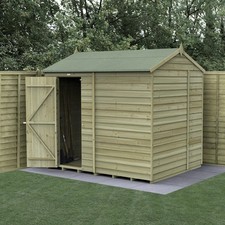 The Forest 4Life Overlap Pressure Treated 10x6 reverse Apex Shed Double Door with windows will help keep your garden clutter free and offers a secure space for you to store garden equipment, the high roof also gives you plenty of space to work. Its fantastic size and increased headroom make it an ideal workshop space. This wooden shed comes with an improved design, featuring fully modular panels. This means it’s delivered in smaller sections but you get more wood, making for an easier assembly, more versatile configuration and a much stronger shed. All in all, the Forest 4Life range of sheds are the best overlap sheds we've ever made.