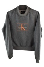 Calvin Klein Jeans Women's Crochet Sweater XL Dark Blue Scoop Neck Long Sleeve