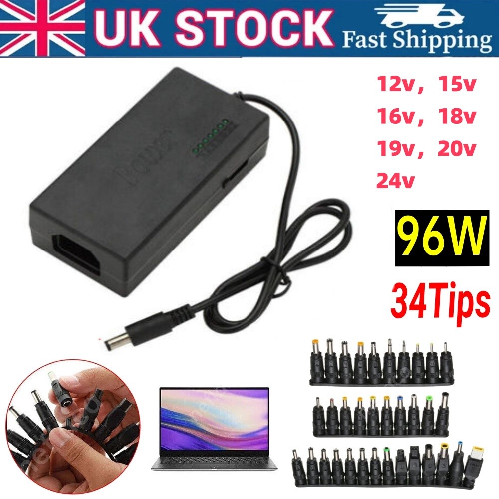 34 Sizes Heads Adapter Universal AC DC Power Supply Charger Multi Laptop PC 96W