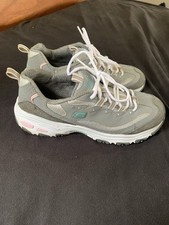 Skechers D'Lites Women 9.5 W Gray Leather Work Shoes Slip Resistant Memory Foam