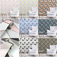 FINE DECOR APEX GEOMETRIC WALLPAPER - METALLIC ROSE GOLD SILVER