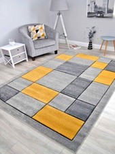 Ochre Gold Grey Mustard Thick Floor Rugs Small Extra Large Sizes Soft Pile Cheap
