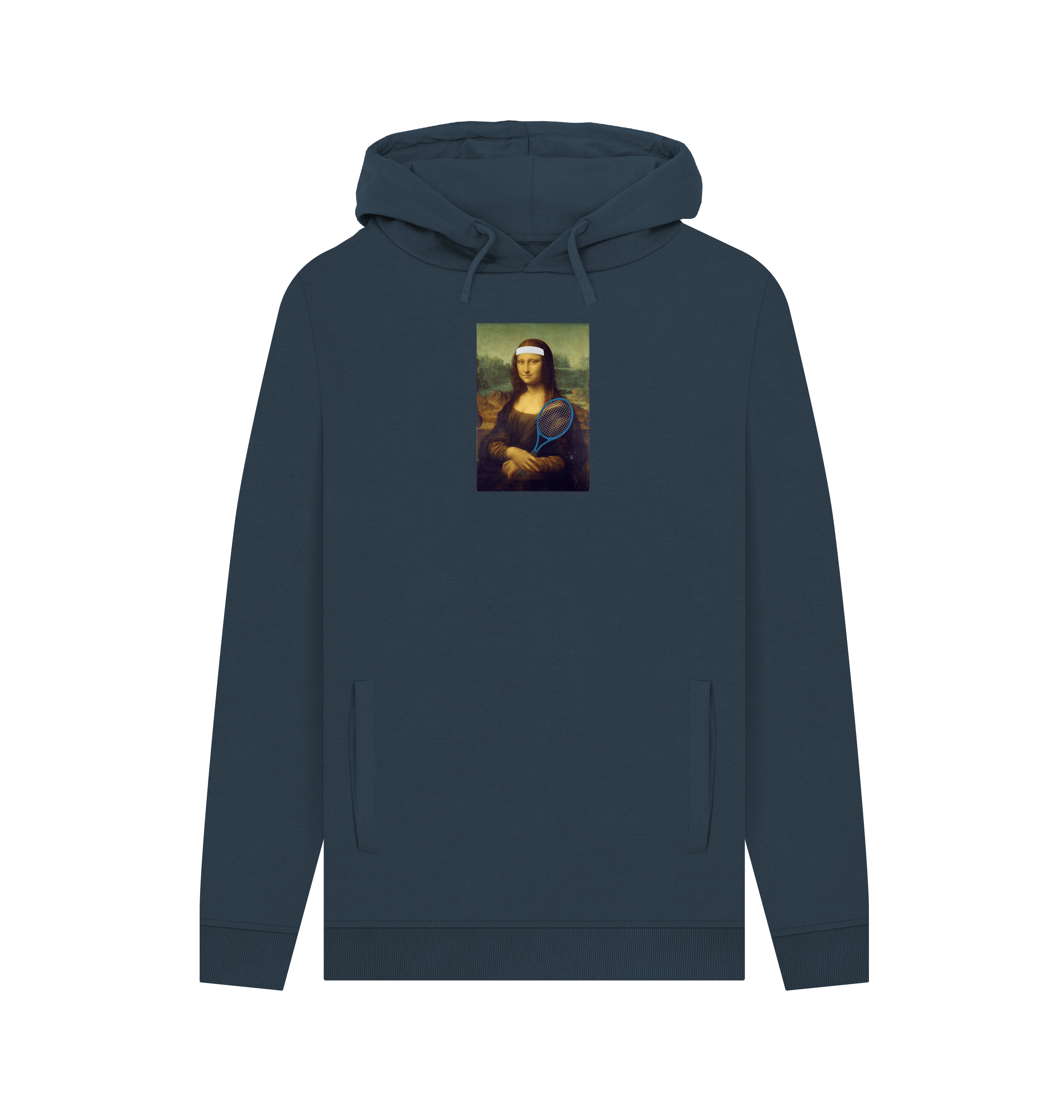 Our OFFICIAL apoh Mona Lisa Tennis Navy Blue Hoodie based on the popular art collections with a Wimbledon twist, features a printed design on the front. These hoodies are made with amazing organic cotton fabric and have a regular fit, making them incredibly soft and comfortable.