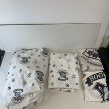 Charming sheet featuring characters and symbols from the beloved Harry Potter series. This piece showcases a light blue backdrop adorned with white stars and images of Harry Potter in various poses, holding his wand, carrying his trunk, and with Hedwig the owl. The design also includes the iconic "HP" Hogwarts logo. This fabric is ideal for crafting projects for Harry Potter fans. Length/Amount: Pieces Material: Cotton Pattern: Harry Potter Color: Blue Suitable For: Crafts, Quilting, Bedding, Children, Accessories Features: Licensed Keywords: Harry Potter, Fabric, Cotton, Quarter, Stars, Moon, Hogwarts, Licensed, Blue, Crafting, Sewing, Hedwig, Wizarding World