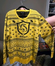 Harry Potter Hufflepuff Sweater Mens Small Yellow Black Wool Scotland Universal