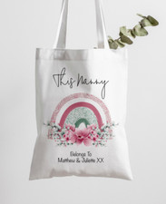 Hand stamped personalised keyring "This Nanny is loved by.". Each order is attached with twine to our logo kraft card and placed inside an organza bag ready for gifting. This piece is made from aluminium which is a great alternative to sterling silver as it is super lightweight, does not tarnish and has a lower chance of reacting to your skin.
