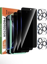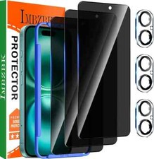IMBZBK 3 Pack Privacy Screen Protector for iPhone 16 Pro Tempered Glass Accessories 3 Pack Camera Lens Protector, Case Friendly Anti Spy Screen Cover Film for Apple 16 Pro, Full Coverage