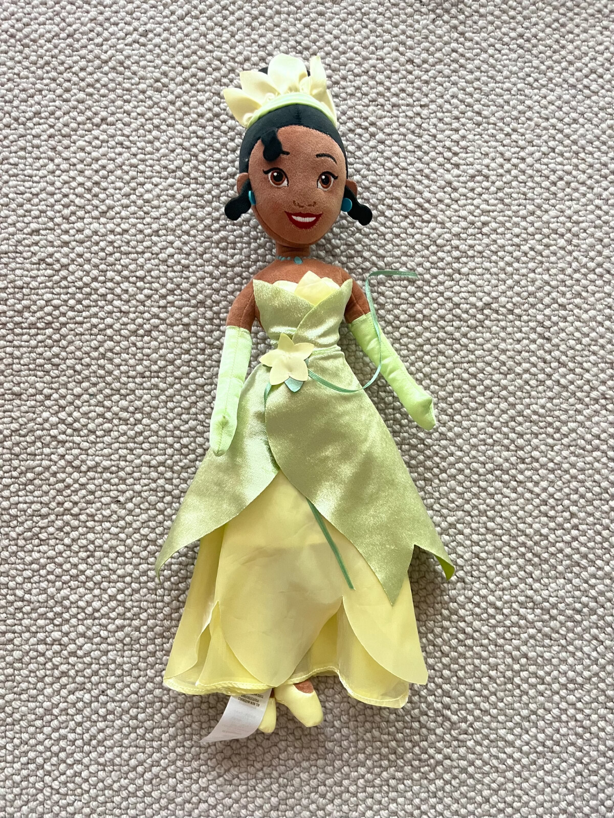 The Tiana plush toy from The Princess and the Frog Disney Store is a small soft toy perfect for children aged 3-11 years old. This officially licensed Walt Disney product features the beloved character Tiana from the Disney Princess family, making it a cute and cuddly companion for young fans of the Disney movie. With its modern design and high-quality construction, this plush toy is sure to be a hit with any Disney-loving child.