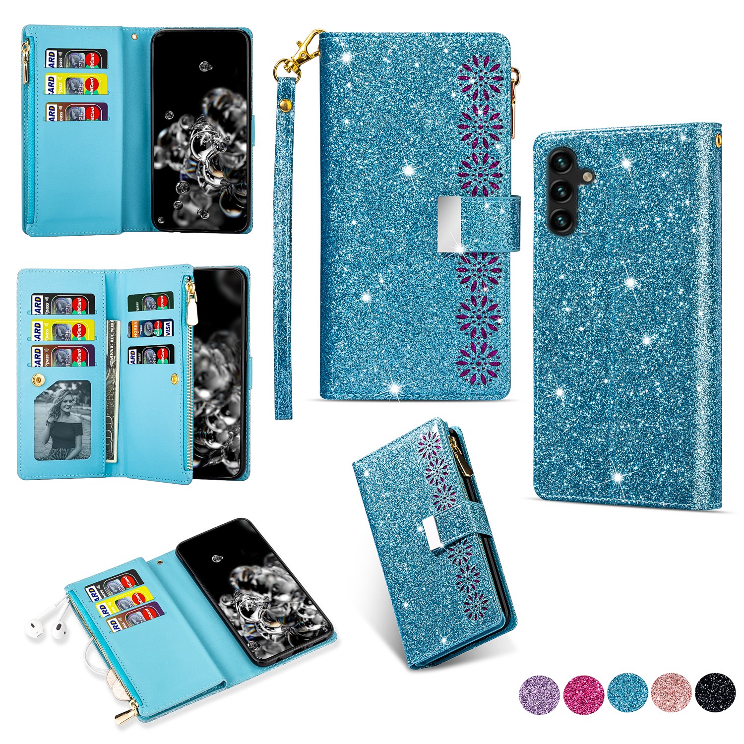 Bling Zip Wallet Phone Case For Samsung A07 A17 A16 A26 A56 A36 A06 Leather Case