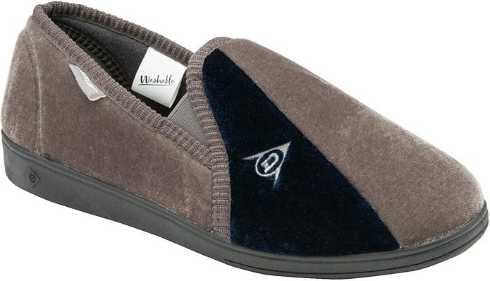 Mens Dunlop Duncan Velour Twin Gusset Full Backed Slippers Sizes 6 to 13