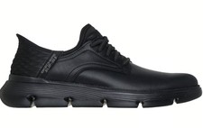 Skechers Goga Mat Arch™ cushioning for added support. Skechers Hands Free Slip-ins® for an easy fit. Skechers Classic Fit™. Skechers® logo detail. Charcoal infused insole neutralizes odor. Design Details Smooth leather upper with stretch laces and plain toe.