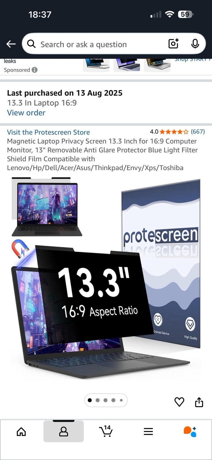 Magnetic Laptop Privacy Screen 13.3 Inch for 16:9 Computer Monitor, 13 Removable