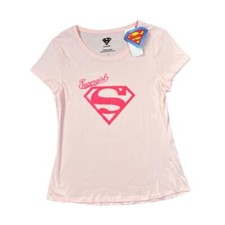 The soft pink color adds a bold yet feminine twist making it perfect for fans of the Superman universe. Bold Supergirl shield logo graphic print. High quality 100% Cotton T-Shirts (Grey composition is 90% Cotton and 10% Polyester).