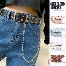 Women Punk Adjustable Belt Buckle Belt Double Star Eyelet Faux Leather Waistband