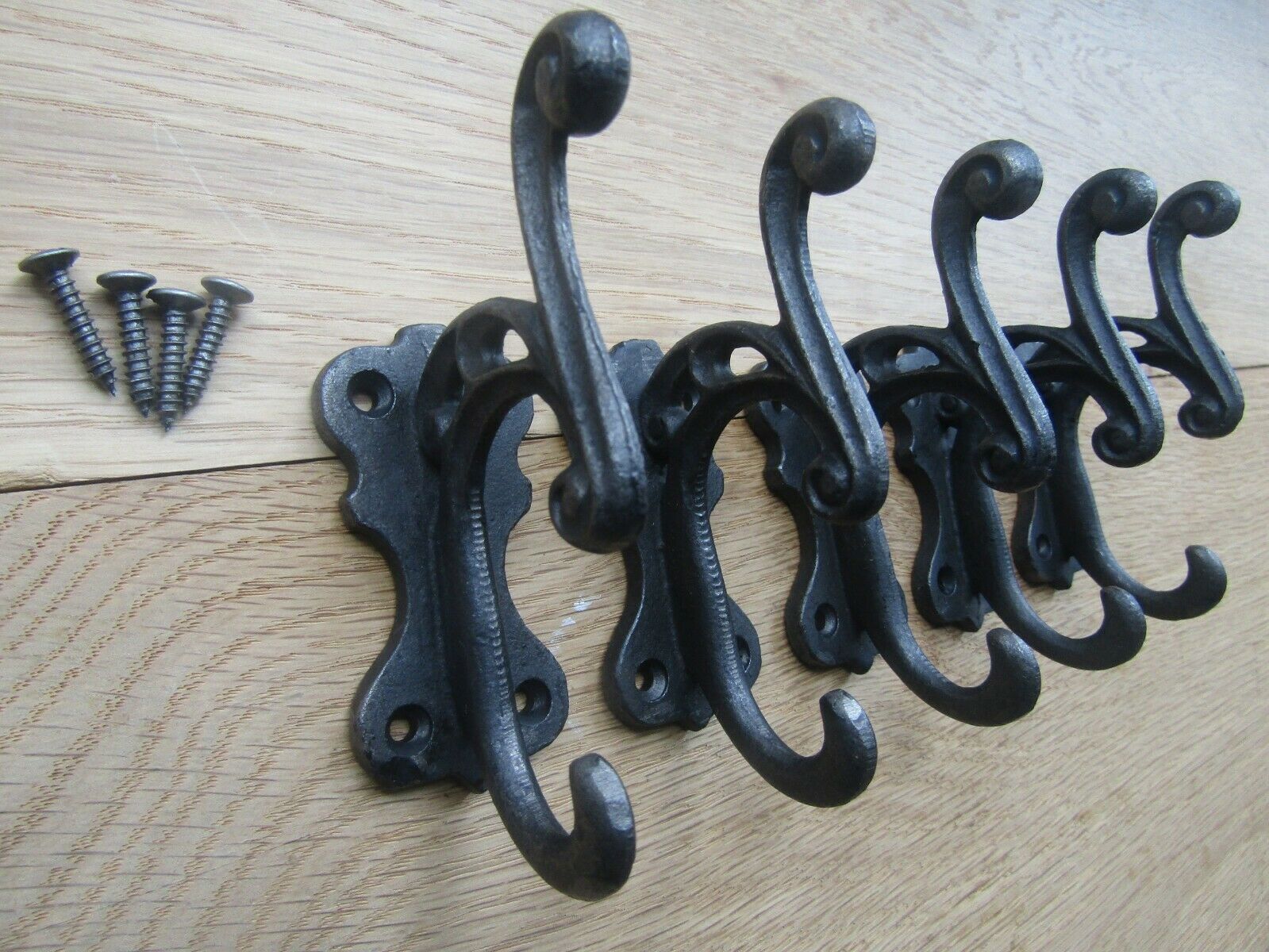 5 x Cast iron Rustic hat and coat hooks vintage retro victorian old antique