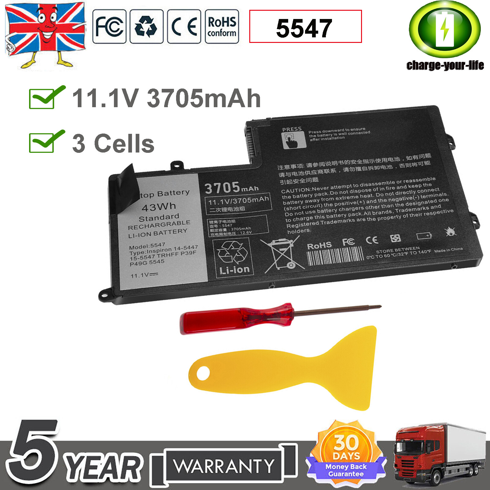 TRHFF 1V2F6 DL011307-PRR13G01 01v2f6. Capacity: 3705mAh / 43Wh. for Dell Latitude 15 3550. for Dell Latitude 14 3450. for Dell Inspiron 14 5000 5445 5447 N5447 5448. for Dell Inspiron 15 5000 5542 5543 5545 5547 N5547 I5547 5548.