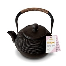 Note: The teapot shown is not included in the box contents. Material: cast iron. Optimum heat retention and release by heating the cast iron (hand warm). Colour: black. The lid is removable and can be used as a cup coaster.