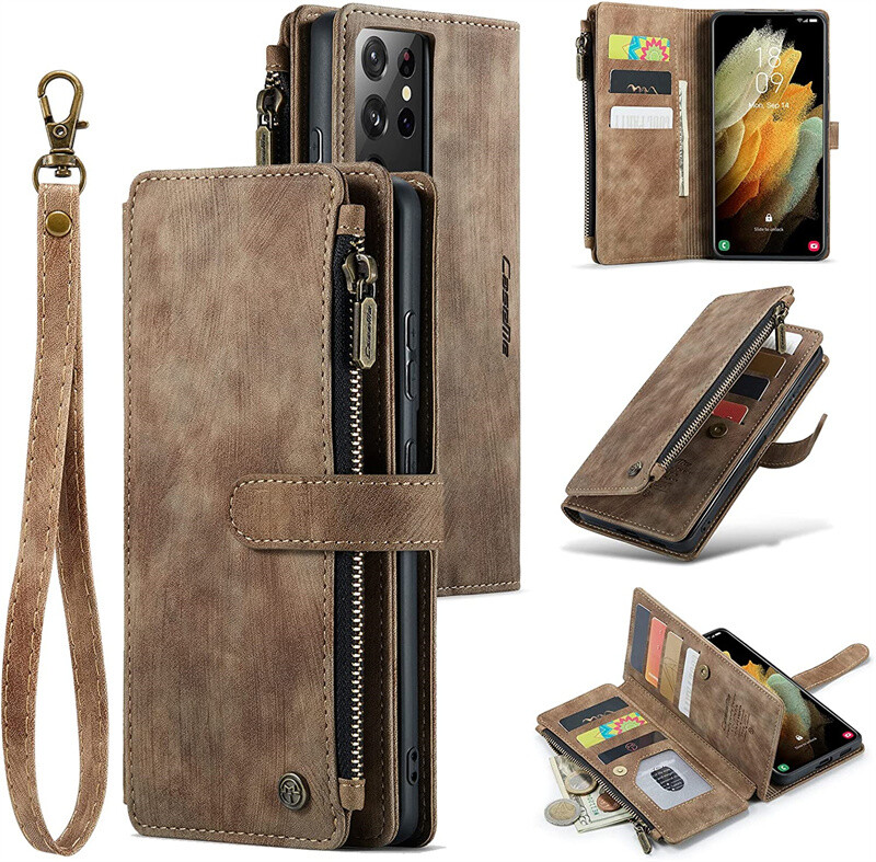 Zip Leather Wallet Case for Samsung Galaxy S23/S24/25/S26 Ultra Card Purse Cover
