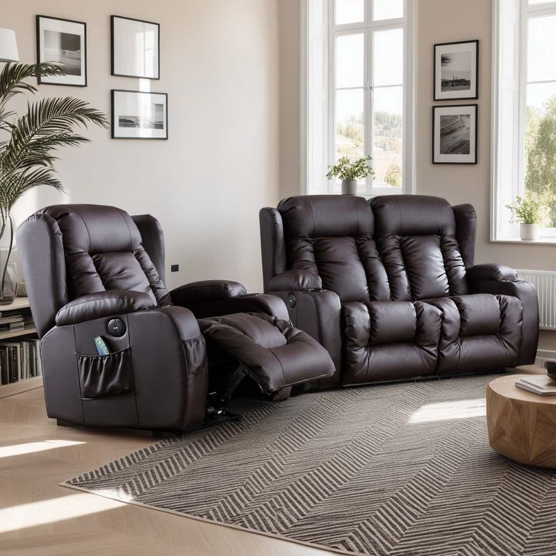 Chester Manual Recliner Bonded Leather 1+2 Seater Sofa Set