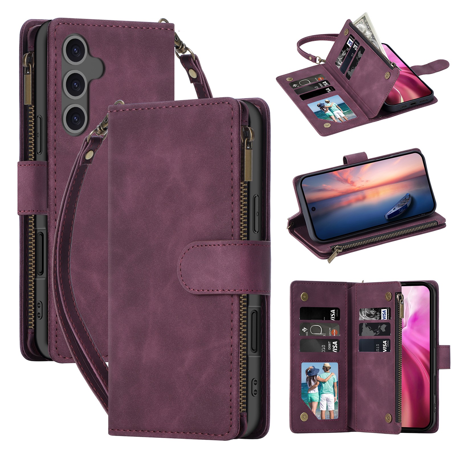 Zip Wallet Leather Card Flip Case For Samsung S25 S24 S23 FE Ultra + Phone Cover