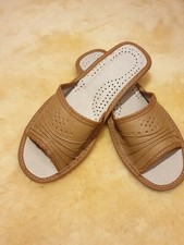 100% real genuine leather Womens Sandals Slides ladies purple flat UK5 flip-flop