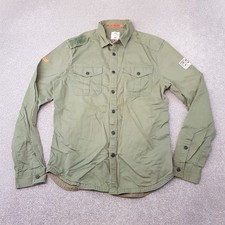 Brand: Superdry Model: The Delta Shirt (Vintage Collection) Style/Pattern: Military-style shirt jacket with button front & chest pockets Colour: Khaki / Faded Olive Green Label Size & Fit: Large (fits ~21” pit to pit, ~29” length – best for Men’s L) Material: 69% Cotton, 25% Polyester, 6% Viscose Condition: Excellent pre-owned condition – light wear/fade adds to vintage look, no major flaws Design/Graphic: Embroidered “Superdry Japan 23” chest badges, sleeve patches, shoulder epaulettes, branded buttons 📐 Measurements (Inches): • Pit to Pit: 21” • Length: 29”