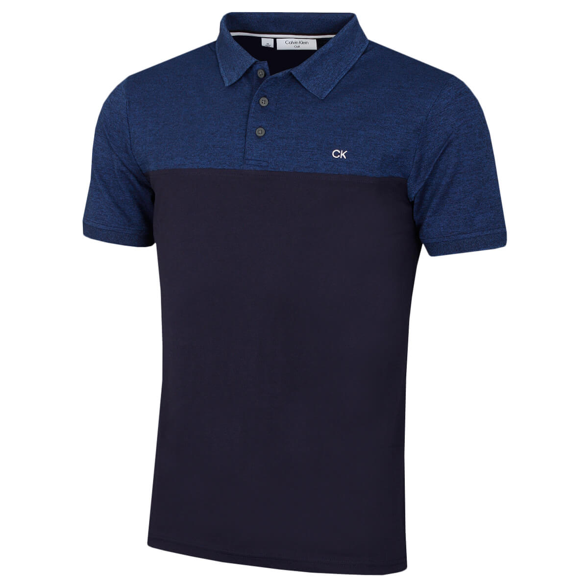 Polo shirts don’t get more on-trend than this colour block pique polo from Calvin Klein Golf. Contrast chest colour block design with ck embroidery for a modern yet classic feel. The fabric gives a soft hand feel while combining cotton and poly with added stretch for comfort.