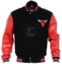 Men Black and Red Wool Varsity Jacket Embroidered LettermanBomber Leather Sleeve