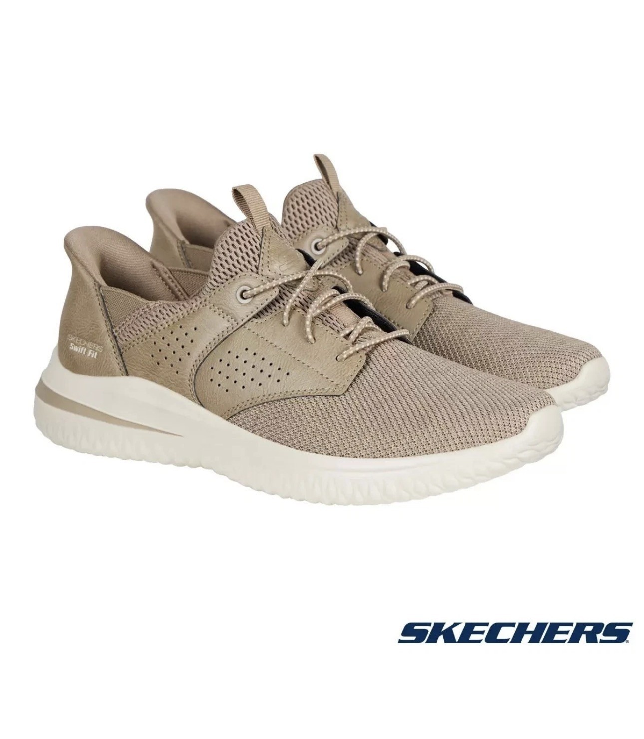 Size 7 Skechers Men’s Slip-On Swift Fit Hands Free Trainers Sneakers Taupe