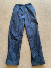 The PETER STORM Waterproof Trousers in M Blue are perfect for outdoor activities such as hiking in the winter and autumn seasons. Made of polyester, these lined trousers feature an elastic waist with a drawstring closure for a comfortable fit. The waterproof design ensures you stay dry in wet weather conditions, while the lightweight fabric makes them easy to wear. With a mid-rise and straight leg style, these trousers offer both practicality and style for casual occasions. Machine washable for easy care, these trousers are a reliable choice for any outdoor adventure. The stitching on the crotch has come apart absolutely tiny just needs a couple of stitches reflected in price. Is not a tear