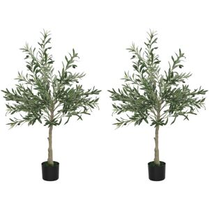 Lifelike foliage without the upkeep - these two HOMCOM artificial olive trees. A set of two, with both pieces featuring silk leaves for a beautiful touch. The flexible branches allow you to shape your tree to how you want - they'll look how you want. Both are complete with cement-filled pots so they stand steady and weighted. HOMCOM 2 Pack Indoor Artificial Plants, Faux Potted Silk Olive Trees, 150cm in Green