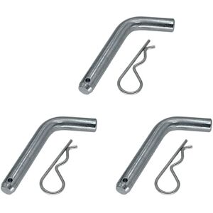 The 5/8 inch diameter of this hitch pin is designed to fit any 2 inch diameter receiver hitch ball mount or other trailer hitch accessories with a 5/8 inch pin hole. This 5/8 inch hitch pin is simple and easy to install on your hitch coupler by securing firmly with the clip and gives your ball mount and other receiver tube inserts an extra secure grip while towing. The trailer hitch pin is made of solid steel for reliable strength and safety on the road. The curved handle trailer hitch pin makes it easy to use and allows the pin to stay securely connected to your trailer hitch and ball mount. The bend creates a useful handle for better grip and allows the pin to stay securely engaged in the trailer hitch and ball mount. The hitch pin is protected by a zinc-plated finish for use, maintains excellent resistance to damage from rain, dirt, road salt, rust and any other corrosives. This receiver hitch pin is a perfect fit for most of your trailer hitches. Color: silver Material: metal