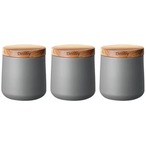 Perfect for storing dry goods such as teabags, coffee, sugar, rice or pasta, the Denby Set of 3 Grey Storage Canisters is made from galvanised steel with a contemporary matt finish and stylish Acacia wooden lids with a complete seal to keep contents fresh. Hand wash. Dimensions: 10cm x 10cm x 11cm. Capacity: 700ml. This high quality Denby storage set is part of the Denby Kitchen range - a collection of accessories that combine quality, performance and style and are available in a choice of attractive colours to suit most kitchen styles.