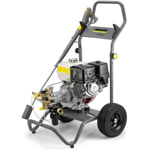 Designed for use in the toughest conditions, the HD 7/15 G is part of Karcher's Petrol Advanced range of professional grade pressure washers and has an extremely robust basic frame construction with heavy duty puncture-proof tyres for mobility. With an output of 150 bar pressure, the HD 7/15 G is fitted with a Honda petrol engine, allowing for total independence from power sources. Additionally, the machine is able to suck up water from lakes or ponds and use it for cleaning. With an EasyForce high pressure gun (which makes use of the recoil force of the high-pressure jet to reduce the holding force for the operator to zero) and EasyLock quick release fasteners, the HD 7/15 G is extremely convenient to use. Set up and dismantling time is reduced by five times compared with conventional screw connections. Features and Benefits • Petrol powered for independence from electrical supply • Honda GX 160 engine • Robust basic frame for daily use in tough conditions • Puncture proof wheels guarantee permanent mobility • Onboard accessory storage • Self priming - can suck up water from ponds, lakes and water tanks • Large water filter to protect the pump • Thermostat valve to protect the pump from overheating • EasyForce gun negates recoil for controlled operation on startup Specifications • Power: Petrol • Flow rate (l/h): 650 • Operating pressure (bar/MPa): 150 / 15 • Engine type: GX 160 • Engine manufacturer: Honda • Weight (with accessories) (kg): 39.5 • Weight incl. Packaging: 44kg • Dimensions: L.790 x W.608 x H.1104mm Contents • HD 7/15 G Petrol Pressure Washer • Trigger gun, EASY!Force Advanced • High-pressure hose, 10 m • High-pressure hose • Spray lance, 840 mm • Power nozzle