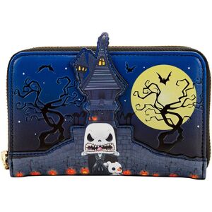 Prepare for a scare! The Funko Pop! by Loungefly Jack Skellington Zip Around Wallet brings some frightful fun to every day. On the front, Jack Skellington and Zero the ghost dog from The Nightmare Before Christmas appear in Funko Pop! form outside the gates of Jack's house. Turn the wallet around and you will find bats flying in the night sky while some eerie jack-o-lanterns sit next to a tree. With 5 slots for holding cards and a clear slot for holding ID, this spooky accessory has room to carry all your tricks and treats.The Funko Pop! by Loungefly Jack Skellington Zip Around Wallet is made of vegan leather (polyurethane). Wallet zips closed and has sturdy metal hardware. Additional features include applique, debossed, printed, and glow in the dark details. Take note of the coordinating inside lining.This wallet is an officially licensed Disney product.Specifications:- Wallet dimensions: 6W x 4H (Please note: width is measured across the bottom of the wallet.)