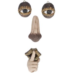 With this tree face, you turn a tree into a mysterious creature that is guaranteed to attract many curious glances. The rustic forest spirit impresses with its unusual design. With his finger in front of his mouth, the tree gazer calls for calm and thus invites you to attentively witness the spectacle of nature. The 4-piece tree decoration for the garden is made of weatherproof cast stone and has hangers on the back, so you can easily attach it to the trunk. Tree Face in Detail - Measurement of each eye H x W x D: approx. 6 x 4.5 x 2.5 cm - Measurement of nose H x W x D: approx: 9 x 4.5 x 3 cm - Measurement of mouth H x W x D: approx. 8.5 x 6 x 2.5 cm - Weight: approx. 310 g - Material: Polyresin - Colour: Beige, brown - Set with 2 faces consisting of 4 parts each Tree Trunk Decor for the Garden - Eye-catching garden ornament for both children and adults - Place the face and eyes and mouth anywhere on the tree trunk - Forest ghoul in a whimsical design with finger in front of mouth
