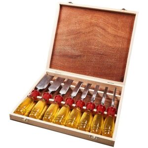 3 Year Warranty DURABLE: This 8 piece wood chisel set has tough, two tone split proof plastic handles and hardened blades with bevel edges VERSATILE: Complete with plastic blade guards, the set includes an assortment of useful sizes and is supplied in an attractive wooden storage box and is ideal for woodworking PLEASE NOTE: These products need to be sharpened before use
