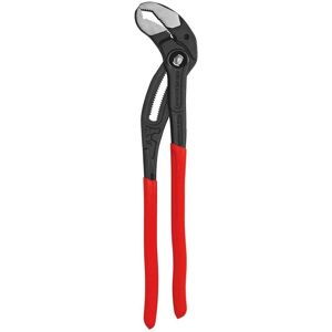 Greater gripping capacity but much lower weight than comparable pipe wrenches Fast push-button adjustment directly on the workpiece, no unintentional slipping of the joint Fine adjustment for optimum adaptation to different sizes of workpieces and a comfortable handle width Knipex 400mm PVC Grip Pliers The KNIPEX 87 01 400 Cobra are high-tech water pump pliers in XL format. The pliers can grip pipes, nuts and flat, round and angular components. With 27-fold fine adjustment for fast adjustment to different sizes of component, gripping teeth induction hardened to approx. 61 HRC for secure hold and long service life and a high level of user comfort due to constant hand-friendly gripping position resulting from fine adjustment. For turning, pulling, gripping, holding and screwing. FEATURES Greater gripping capacity but much lower weight than comparable pipe wrenches Fast push-button adjustment directly on the workpiece, no unintentional slipping of the joint Fine adjustment for optimum