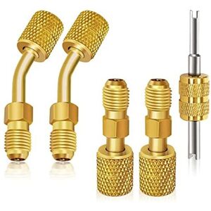 R410A adapter is specially designed with a sewing to effectively avoid opening the air conditioning core tube during operation and effectively prevent fluoride leakage. The R410a vacuum pump adapter designed with excellent sealing and extral green gaskets further provide good sealing. The brass converter of the R410a charging vacuum port adapter converts 5/16 inch SAE charging vacuum ports (new style R410a) to accept a 1/4 inch SAE gauge hose. 1/4 Inch Male SAE x 5/16 Inch SAE Adapter. Fits most new R410A mini split air conditioner systems. R410A charging vacuum adapter kit fits most of the latest R410A ductless mini split systems, perfectly suitable for R410a mini split air conditioners, refrigeration and refrigeration systems. for many commercial and industrial refrigeration applications. Our R410a mini vacuum pump adapters are made of premium brass, with solid structure/ and for long-lasting use. Lasts for a long time; easy to use and install, strong sealing for durability and