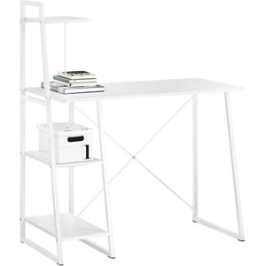 Modern design and practical table desk is good choice for your home and office. Large desk area so you can have more than enough room for your computer or reading material. 3 tiers side rack provides more space for home and office storage. Strong metal frame provides stable and durable structures. Product Details Material: Chipboard, metal frame. Color: White. Overall Dimensions: W102 x D50 x H117cm. Worktop size: W100 x D50cm. Weight:16.6kg. Maximum load: 50kg. Item comes in a flat pack and requires self-assembly. Detailed instructions supplied.